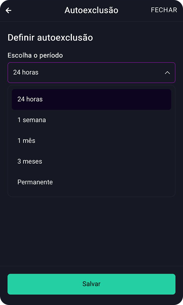 - Configurar período de autoexclusão, se desejar uma pausa no jogo.