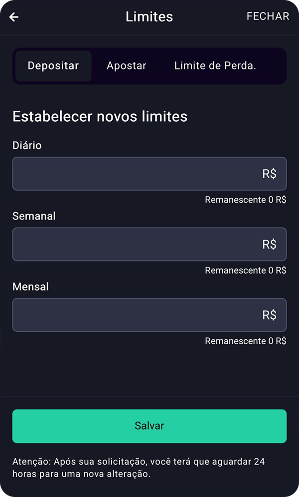 - Definir limites de depósito diários, semanais ou mensais.