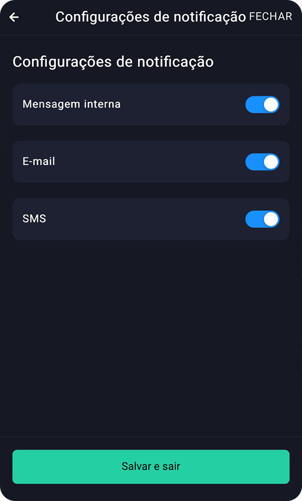 - Ativar notificações (e-mail, SMS ou mensagens internas).