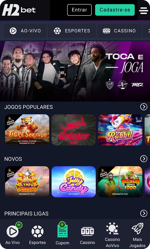 O H2bet oferece jogos ao vivo organizados por categorias, como roleta, blackjack, bacará, pôquer, cartas, jogos de TV, crupiê ao vivo e mesas exclusivas com dealers brasileiros. Cada categoria reúne diferentes variações e estilos de jogo, sempre com transmissão em alta definição e interação em tempo real.